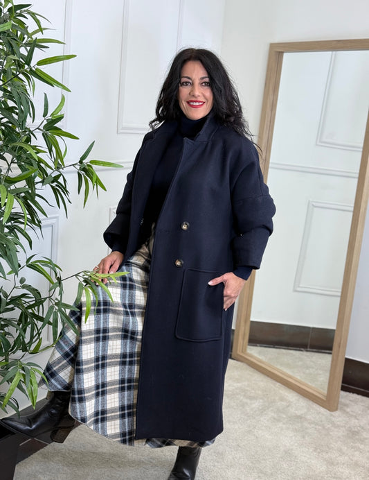 AgotadoABRIGO AMBAR PAÑO AZUL MARINO
