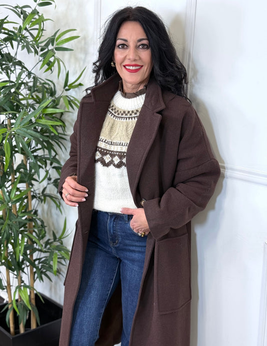 AgotadoABRIGO AMBAR PAÑO CHOCOLATE