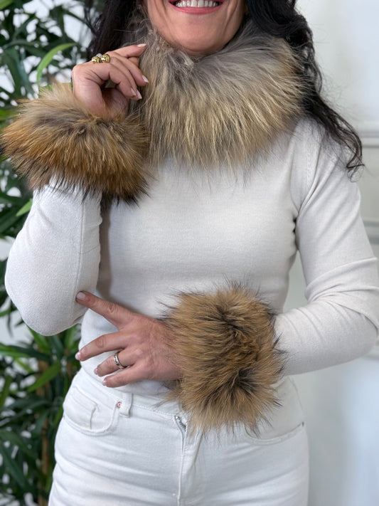 AgotadoCUELLO Y PUÑOS RAYAS BEIGE