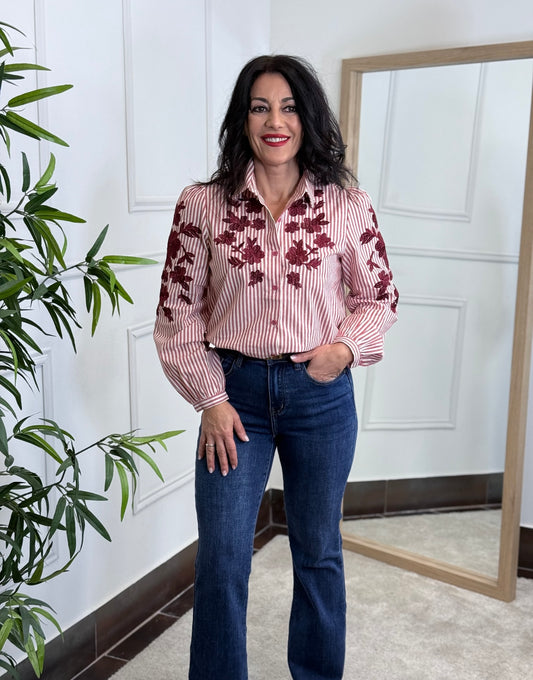 AgotadoCAMISA FLOWER BURDEOS