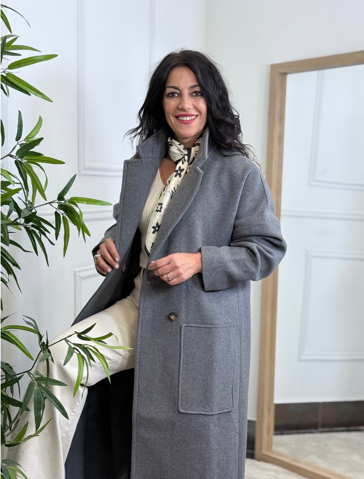 Abrigo paño con cierre de botones delanteros, bolsillos delanteros, abertura trasera, Forro interior