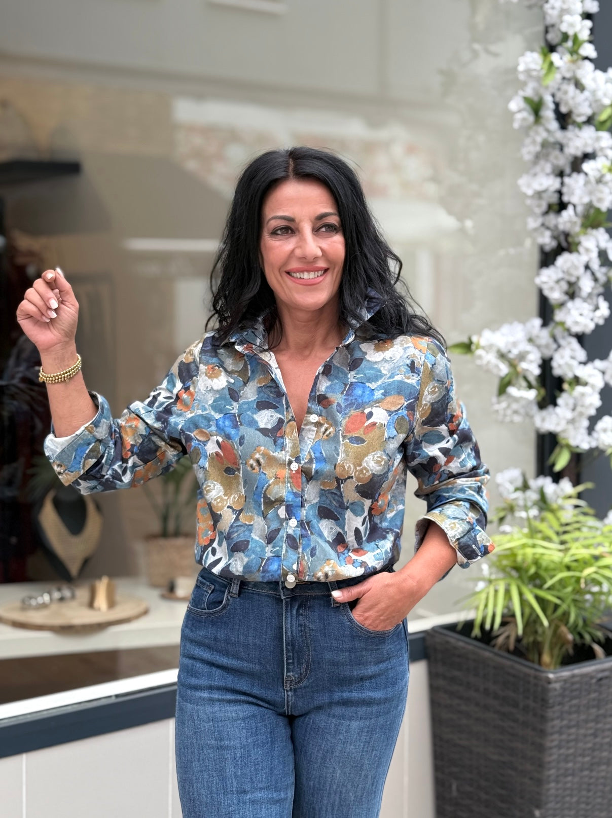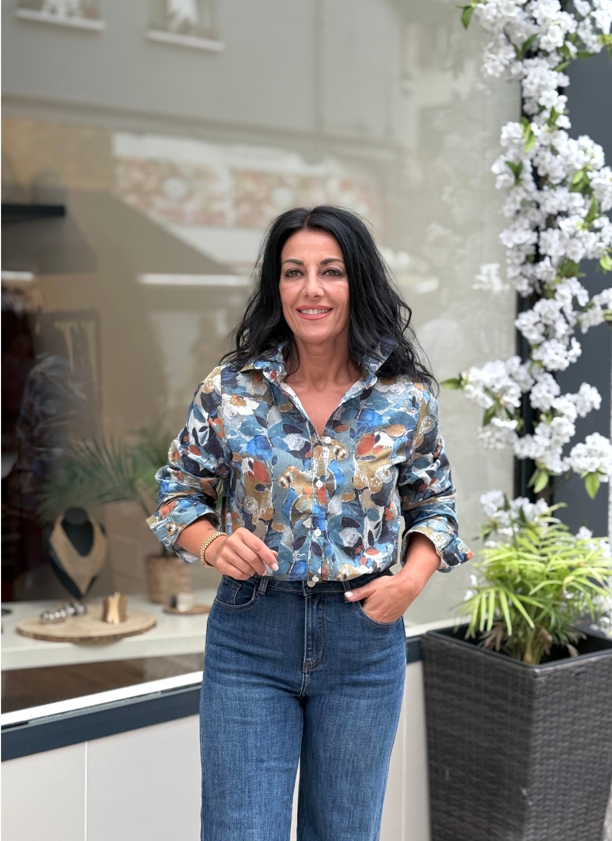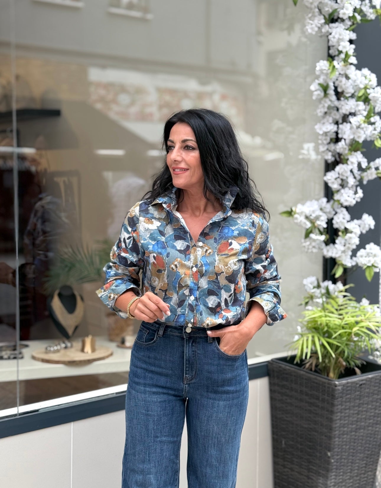 Camisa básica estampada, cierre con botones frontales y puño con cierre de boton.