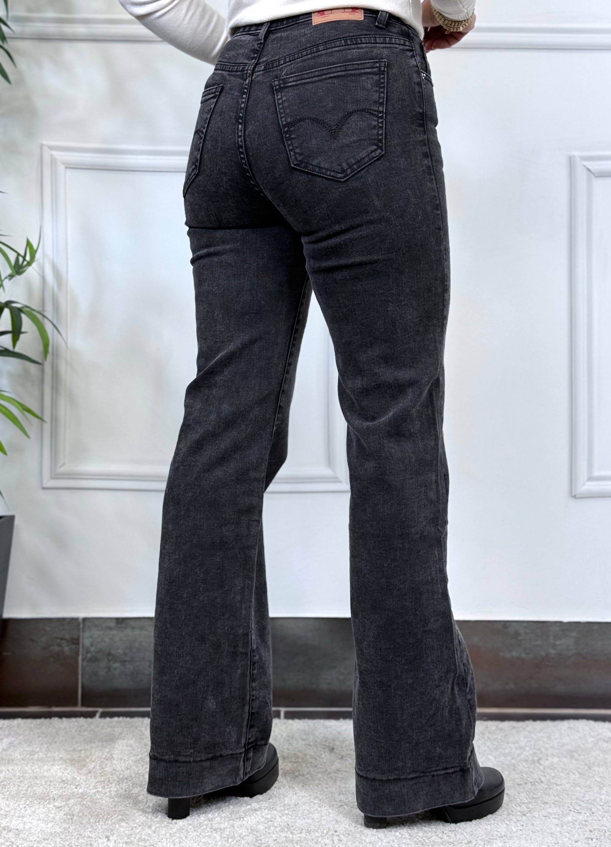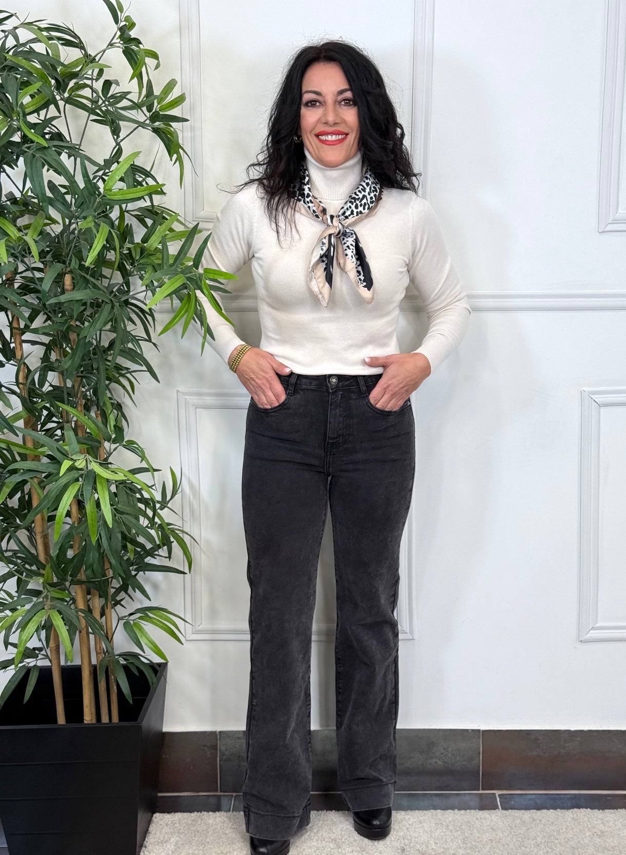 Pantalon wide leg beige elastico, cierre con botón y cremallera delantera, bolsillos delanteros ytraseros, tiro alto.