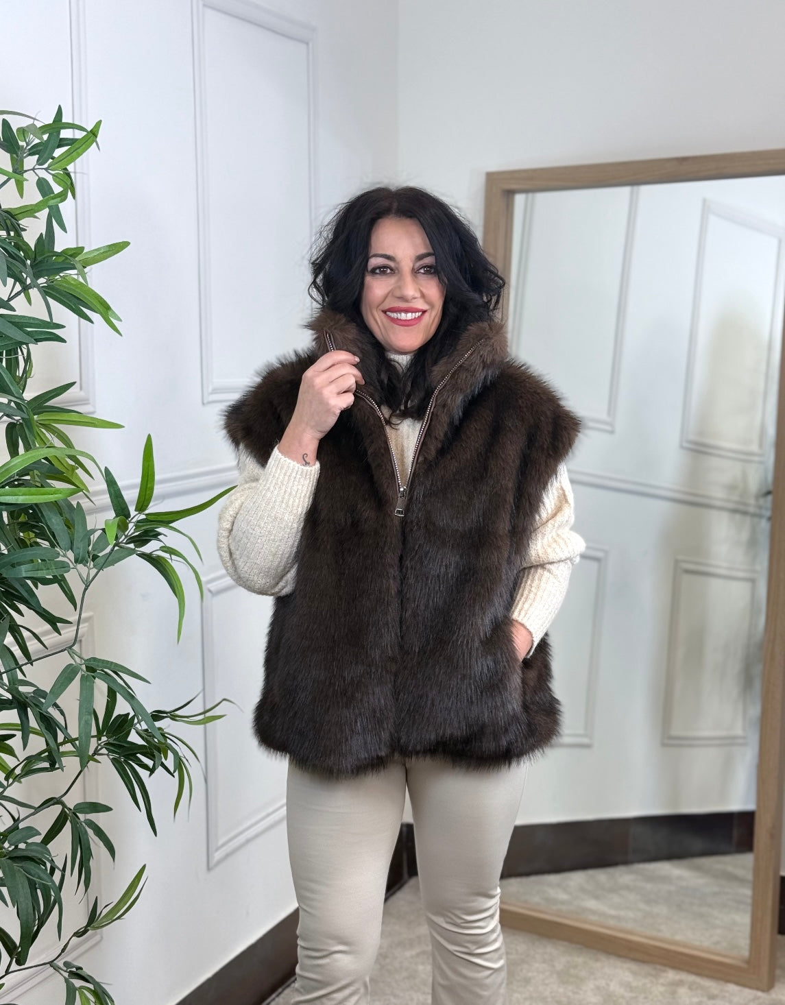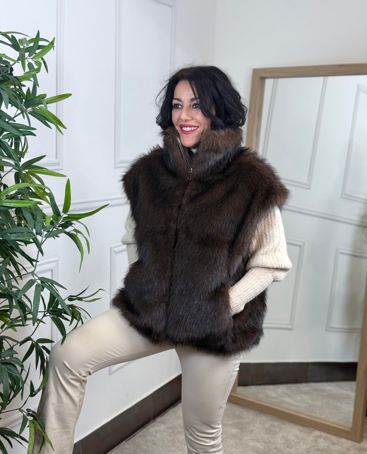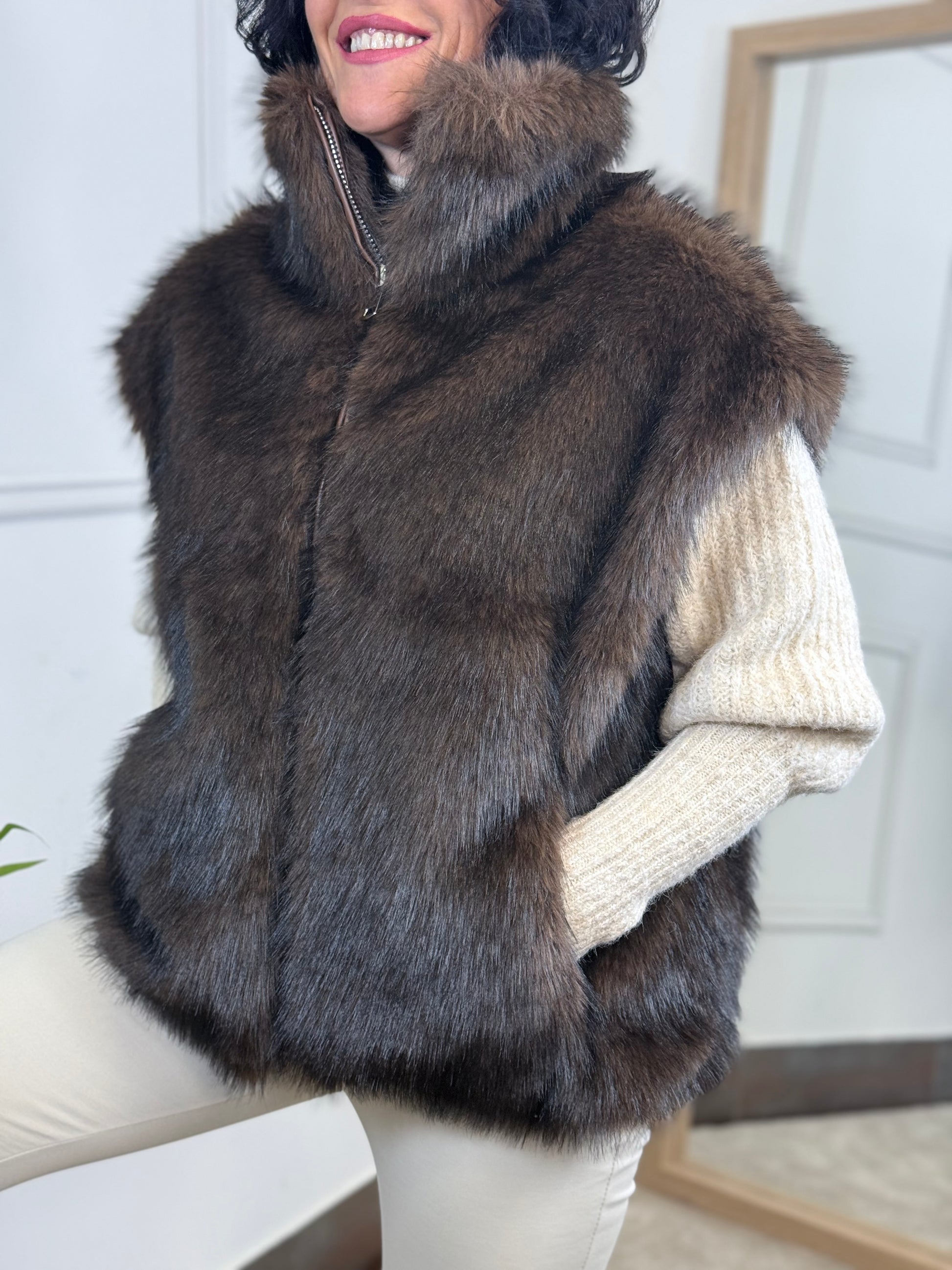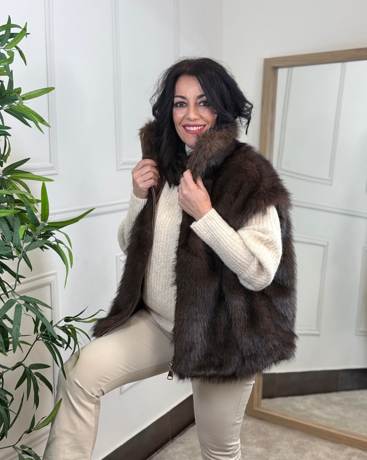 Chaleco de pelo sintético con cremallera y forro interior.Bolsillos laterales.